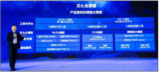 同时,百度产业级知识增强大模型“文心”全景图首次亮相,从技术自主创新和加速产业应用两方面,推动中国AI发展更进一步。